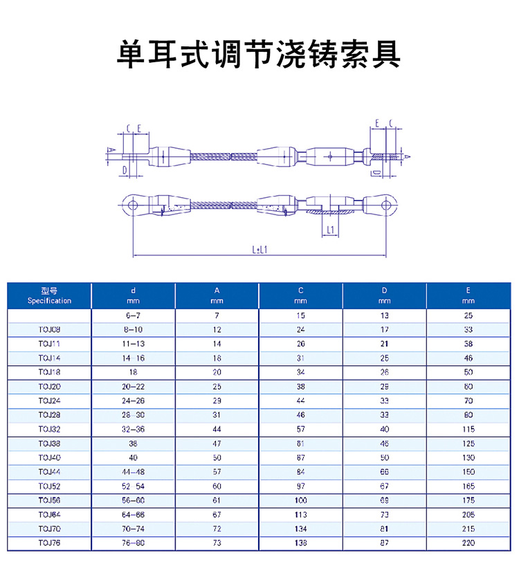 產品中心 當前位置:首頁產品中心—單耳式調節(jié)澆鑄索具